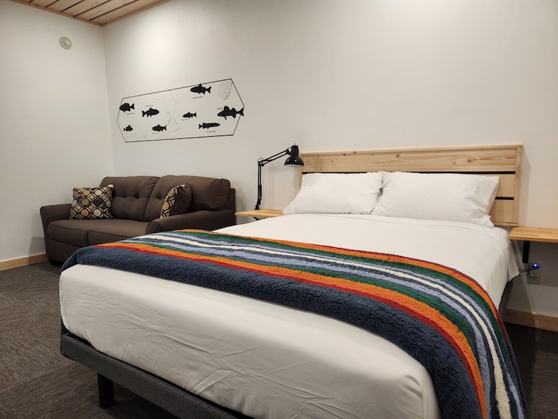 Queen Bed, couch, bathroom with shower, TV, WIFI